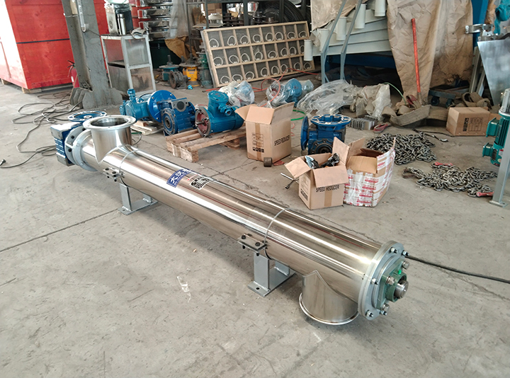 螺旋輸送機一般分為有軸螺旋輸送機、無軸螺旋輸送機兩種。有軸螺旋輸送機由螺桿、U型槽蓋板、進、出料口和驅(qū)動裝置組成,而無軸螺旋輸送機則把螺桿改為無軸螺旋,并在U型槽內(nèi)裝置有可換襯體,結(jié)構(gòu)簡單。物料由進口輸入,經(jīng)螺旋推動后由出口輸出,整個過程可在一個密封的槽中進行,降低了噪聲,減少了異味的排出。由于設備中沒有高速運轉(zhuǎn)零件,因此螺桿磨損低,設備能耗低,幾乎不需要維修。