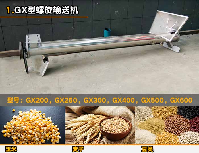GX型螺旋輸送機(jī)是較老的螺旋輸送設(shè)備,其有單管于雙管兩種形式,適用于水平的輸送傾斜角不能夠超過20°??奢斔鸵恍K狀的(小塊狀物料)例如:麥子,玉米,黃豆等糧食。