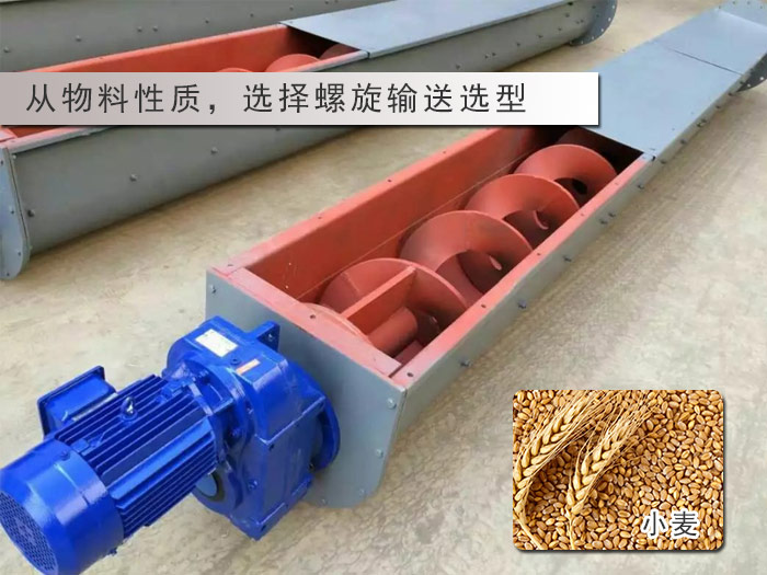 螺旋輸送機(jī)的不同就還在于螺旋輸送機(jī)的葉片的不同所以,要根據(jù)被輸送物料性質(zhì),確定螺旋輸送機(jī)的選型,如:輸送小麥、稻谷等散落性較好的物料時應(yīng)選用滿面式葉片;輸送油料類黏性大、易粘結(jié)的物料時,為了防止堵塞,應(yīng)選用帶式葉片。