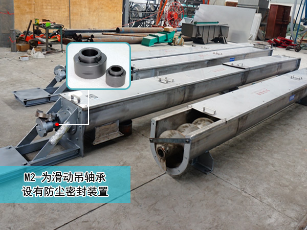 1,M1-為滾動(dòng)吊軸承,采用80000型密封軸承,軸蓋上另有封塵密封結(jié)構(gòu),常用在不易加油,不加油或?qū)ξ锪嫌形廴镜牡胤?,密封效果好,吊軸壽命長,輸送物料溫度小于等于80℃。