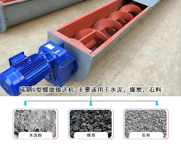 1,普通碳鋼U型螺旋輸送機(jī)-主要適用于水泥,煤炭,石料,等磨損較大,對物料沒有特殊要求的行業(yè)。