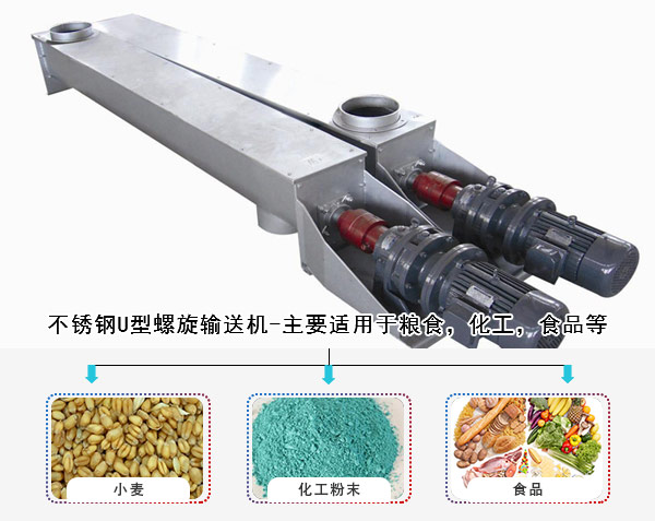 2,不銹鋼U行螺旋輸送機(jī)-主要適用于糧食,化工,食品等對輸送環(huán)境有要求的行業(yè),清潔度高,并且不會(huì)對物料產(chǎn)生污染,使用時(shí)間長,但是造價(jià)相對較高。