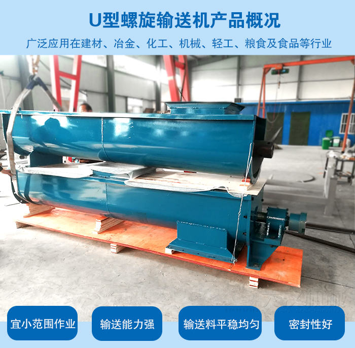 U型螺旋輸送機是螺旋輸送機的一種,適宜小范圍作業(yè)。U型螺旋輸送機因其輸送能力強,輸送料平穩(wěn)均勻,不會造成揚塵、不對周邊環(huán)境進行污染,且能耗小,密封好,利屬于設備,近年來已經(jīng)被廣泛應用在建材、冶金、化工、機械、輕工、糧食及食品等國民經(jīng)濟的很多領域。