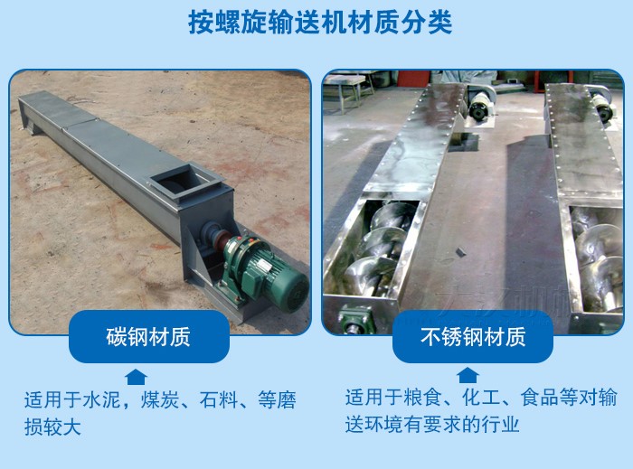 2、不銹鋼U型螺旋輸送機-主要適用于糧食、化工、食品等對輸送環(huán)境有要求的行業(yè),清潔度高,并且不會對物料產(chǎn)生污染,使用時間長,但是造價相對較高。