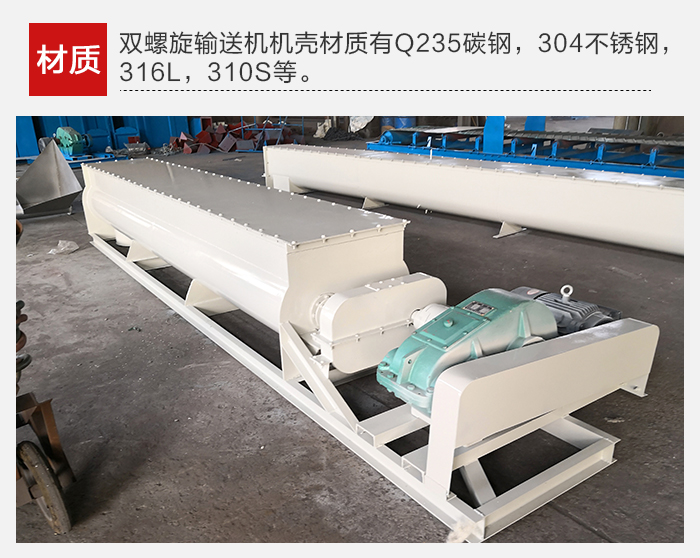 雙螺旋輸送機(jī)機(jī)殼材質(zhì)有Q235碳鋼,304不銹鋼,316L,310S等等,選擇不同材質(zhì)的輸送機(jī),其價(jià)格就會(huì)相應(yīng)有所變化。在型號(hào)等條件相同情況下,碳鋼和不銹鋼螺旋輸送機(jī)的差價(jià)在1500-2000元之間。