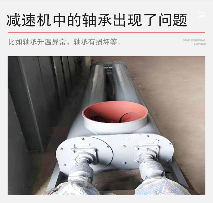 2、物料中雜物使螺旋吊軸承堵塞,處理方法是停機(jī)清除機(jī)內(nèi)雜物。