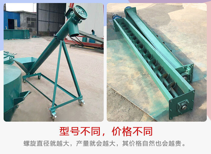 以大漢機械為例,其生產(chǎn)的螺旋給料機主要有LS螺旋給料機、U型螺旋給料機和無軸螺旋給料機等,不同型號的螺旋給料機的管徑、設(shè)計等也會有所不同, 所以其價格會有所變動,型號越大,螺旋直徑就越大,產(chǎn)量就會越大,其價格自然也會越貴。所以對于型號的選擇需要根據(jù)用戶輸送物料來合理選擇。