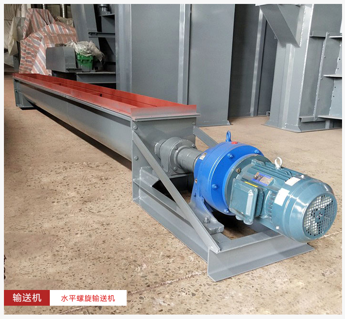 水平螺旋輸送機是將物料均勻地喂送到下道工序中,在驅(qū)動裝置中電動機帶動減速機,再由聯(lián)軸器傳遞給螺旋軸當(dāng)物料從進料口進去后,在螺旋葉片的作用下將物料均勻輸出。