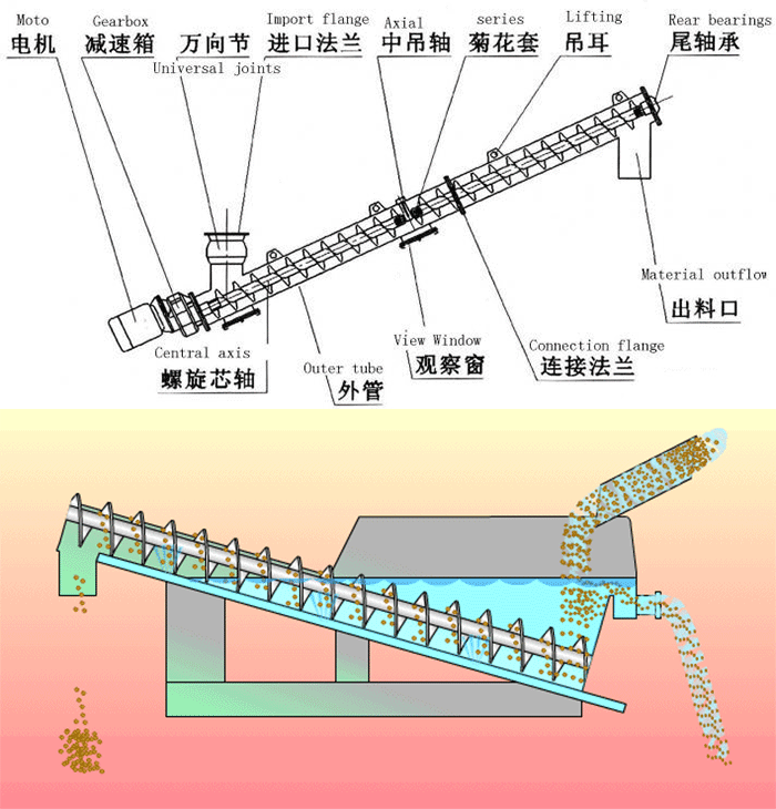 傾斜螺旋輸送機是利用電動機經(jīng)減速器帶動螺旋回轉(zhuǎn),通過旋轉(zhuǎn),把物料沿固定的機殼內(nèi)推移而進行輸送工作,從而輸送到預(yù)定的位置。 大角度螺旋輸送機根據(jù)各種用途、安裝位置,型號、輸送方式,對減速器、電動機的安裝位置可多樣化、不受限制。