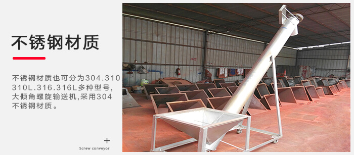 不銹鋼材質(zhì)也可分為304.310.310L.316.316L多種型號,大傾角螺旋輸送機(jī),所有的機(jī)型都可以采用304不銹鋼材質(zhì),但是當(dāng)輸送距離長時(shí),表面積增大,打磨難度增加,一般會選擇噴砂,從視覺上就不會像常見的不銹鋼那樣光亮,但質(zhì)量不會有影響。
