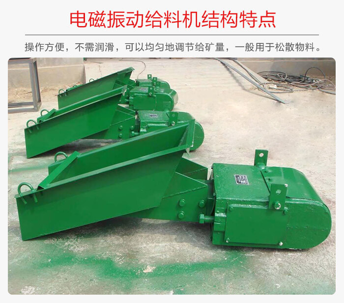 電磁振動(dòng)給料機(jī)結(jié)構(gòu)簡(jiǎn)單,操作方便,不需潤(rùn)滑,耗電量??;可以均勻地調(diào)節(jié)給礦量;因此已得到廣泛應(yīng)用。一般用于松散物料。