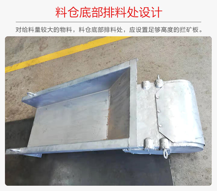 對(duì)給料量較大的物料,料倉底部排料處,應(yīng)設(shè)置足夠高度的攔礦板; 為不影響給料機(jī)的性能,攔礦板不得固定在槽體上。