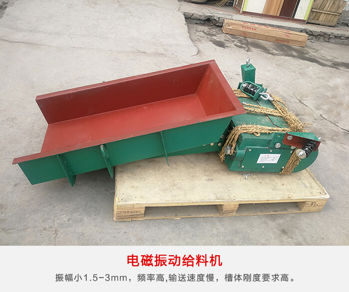 電磁振動(dòng)給料機(jī)采用電磁激振器作為振動(dòng)源帶動(dòng)料斗工作,它的特點(diǎn)是振幅小1.5-3mm,頻率高。3000次/min(半波整流)或1500次/min(半波整流后再分頻),所以輸送速度慢,槽體剛度要求高。