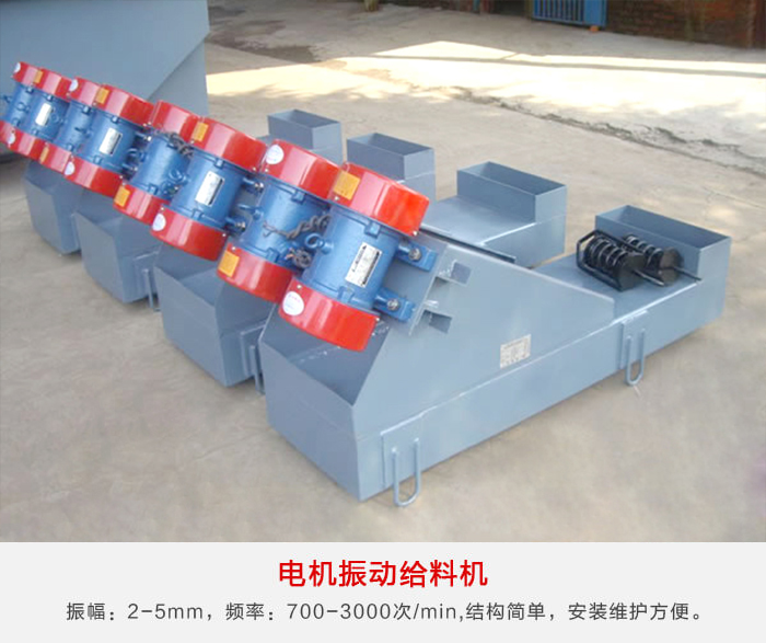 電機(jī)振動(dòng)給料機(jī)為慣性振動(dòng)給料的一種,采用振動(dòng)電機(jī)作為激振源帶動(dòng)料斗工作,振幅:2-5mm,頻率:700-3000次/min所以結(jié)構(gòu)簡(jiǎn)單,安置、維護(hù)方便。