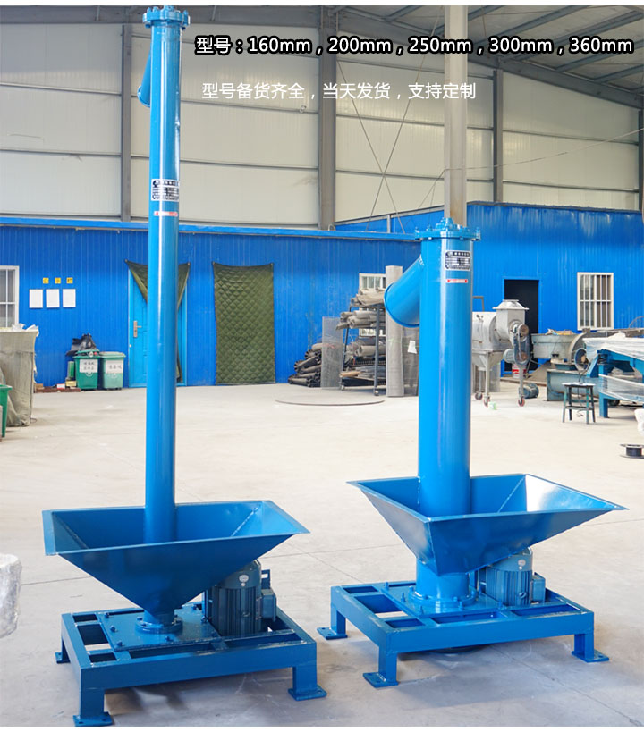 大漢機(jī)械的垂直立式螺旋輸送機(jī)型號(hào)有160,200,250,300,360等5種規(guī)格,且備貨齊全,支持當(dāng)天發(fā)貨;此外,特定型號(hào)可根據(jù)用戶描述需求,設(shè)計(jì)圖紙,進(jìn)行生產(chǎn),如移動(dòng)式垂直立式螺旋輸送機(jī),專用于不固定場所的物料輸送。