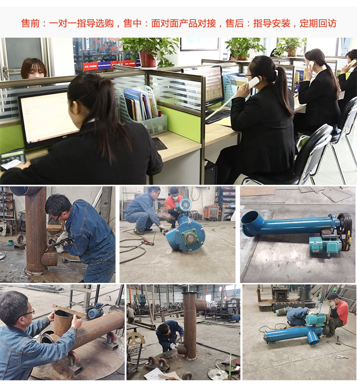 大漢垂直立式螺旋輸送機(jī)廠家采用線上,線下雙渠道賣貨,擁有專業(yè)的售前,售中,售后服務(wù)團(tuán)隊(duì),售前一對(duì)一指導(dǎo)選購,售中接用戶來廠參觀,專業(yè)技術(shù)人員與用戶對(duì)接需求;售后專人上門講解設(shè)備使用,指導(dǎo)安裝,定期回訪,售后記錄跟蹤。