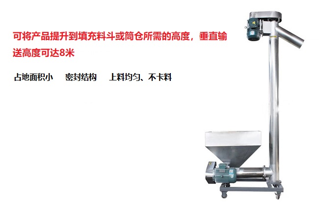 物料隨螺旋高速旋轉(zhuǎn),被輸送的物料從水平部分的進(jìn)料口加入,通過(guò)旋轉(zhuǎn)的水平進(jìn)料螺桿送入輸送機(jī)和垂直部分,然后將物料向上推至出料口出料口由垂直螺桿,物料隨螺桿高速旋轉(zhuǎn),被輸送的物料從水平部分的進(jìn)料口加入,通過(guò)旋轉(zhuǎn)的水平進(jìn)料螺桿進(jìn)入輸送機(jī),然后用垂直螺旋將物料推到出料口排出。