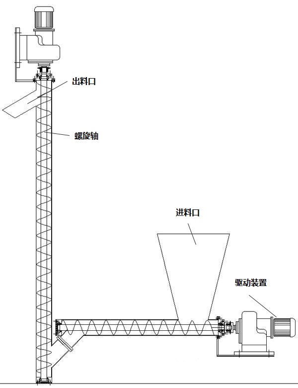 物料隨螺旋高速旋轉(zhuǎn),被輸送的物料從水平部分的進料口加入,通過旋轉(zhuǎn)的水平進料螺旋送入輸送機和垂直部分,然后將物料向上推至出料口出料口由垂直螺旋,物料隨螺桿高速旋轉(zhuǎn),被輸送的物料從水平部分的進料口加入,通過旋轉(zhuǎn)的水平進料螺旋進入輸送機。和垂直部分,然后用垂直螺旋將物料推到出料口排出。