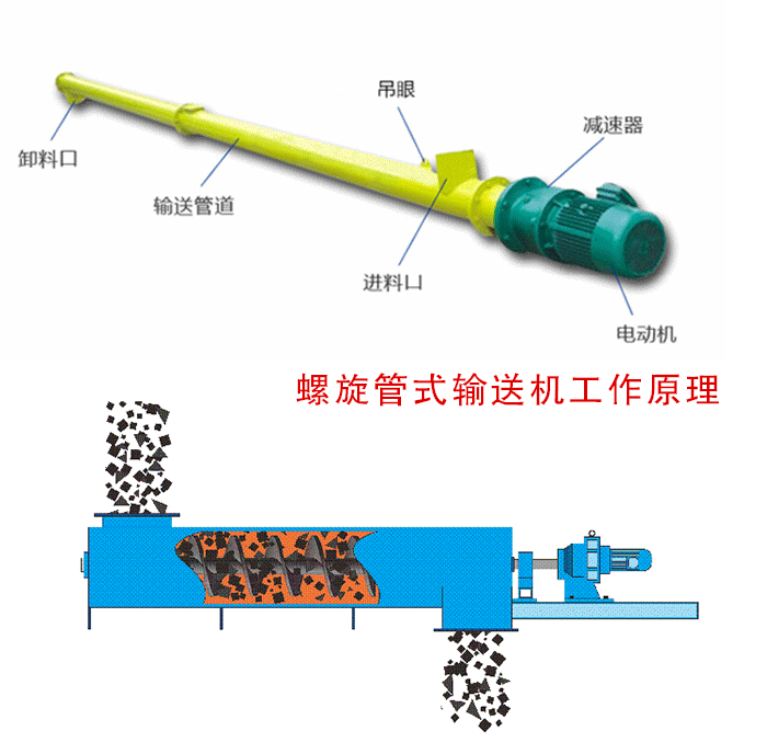 螺旋管式輸送機是依靠電機帶動螺旋回轉(zhuǎn),對物料進行推移從而實現(xiàn),輸送的目的的一種連續(xù)輸送設(shè)備,可以水平,傾斜,垂直輸送粉末,顆粒及小塊狀物料。有結(jié)構(gòu)電簡單,橫截面小,密封性好,操作方便,維修員容量的。