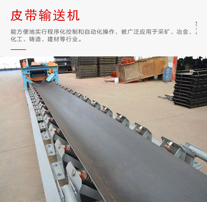 皮帶輸送機(jī)又叫膠帶輸送機(jī),能方便地實行程序化控制和自動化操作,皮帶輸送機(jī)廣泛應(yīng)用于采礦、冶金、化工、鑄造、建材等行業(yè)的輸送和生產(chǎn)流水線以及水電站建設(shè)工地和港口等生產(chǎn)部門,主要用于連續(xù)或間歇運動來輸送100KG以下的物品或粉狀、顆狀物品,其運行高速、平穩(wěn),噪音低,并可以上下坡傳送,具有輸送能力強(qiáng),輸送距離遠(yuǎn),結(jié)構(gòu)簡單易于維護(hù)的優(yōu)勢。