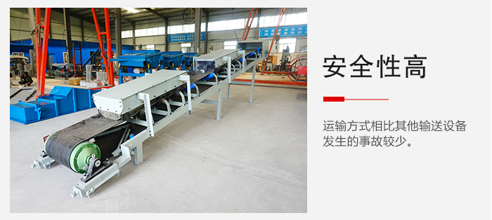 皮帶輸送機(jī)具有很高的安全性, 需要的生產(chǎn)人員很少,其他運輸方式相比發(fā)生事故的機(jī)會比較少。不會因大塊物料掉下來砸傷人員或由于大型笨重的車輛操縱失靈而引起事故。