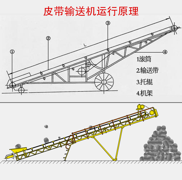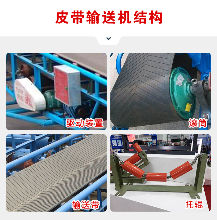 它是由上下托輥支承的作為承載構(gòu)件和牽引構(gòu)件的輸送帶,繞過頭、尾滾筒形成閉合環(huán)路的輸送機(jī)械,它借助于驅(qū)動滾筒與輸送帶之間的摩擦來傳遞動力,實現(xiàn)物料輸送??捎糜谒?、傾斜向上、傾斜向下輸送物料。