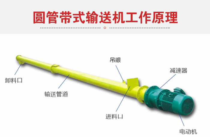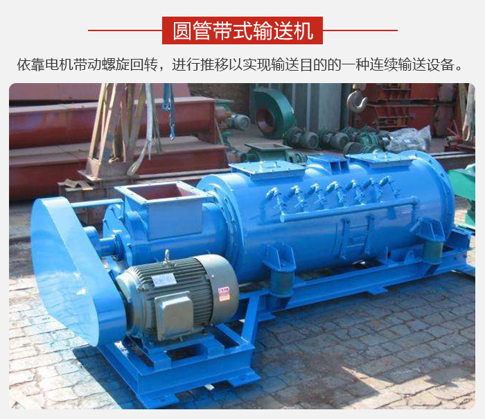 圓管帶式輸送機(jī)是依靠電機(jī)帶動(dòng)螺旋回轉(zhuǎn),對(duì)物料進(jìn)行推移以實(shí)現(xiàn)輸送目的的一種連續(xù)輸送設(shè)備,可以水平、傾斜、垂直輸送粉末、顆粒及小塊狀物料。具有結(jié)構(gòu)簡(jiǎn)單、橫截面積小、密封性好、操作方便、維修容易、便于封閉運(yùn)輸?shù)葍?yōu)點(diǎn)。