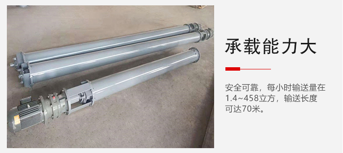 1、承載能力大、安全可靠,每小時(shí)輸送量在1.4~458立方,輸送長(zhǎng)度可達(dá)70米;