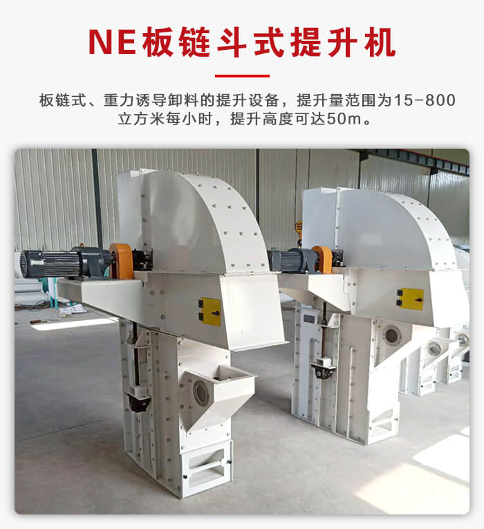 NE板鏈斗式提升機(jī)為板鏈?zhǔn)?、重力誘導(dǎo)卸料的提升設(shè)備,該系列提升機(jī)具有NE15 ~ NE800多種規(guī)格。提升量范圍為15 ~ 800m3 /h,提升高度可達(dá)50m。